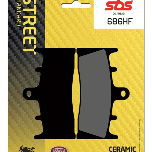 Pastiglie dei freni SBS 686HF della gamma Street Organique, ideali per sostituire le pastiglie originali e garantire una frenata stabile, un elevato livello di comfort, una lunga durata e una protezione del disco in condizioni di bagnato e asciutto per moto e scooter.