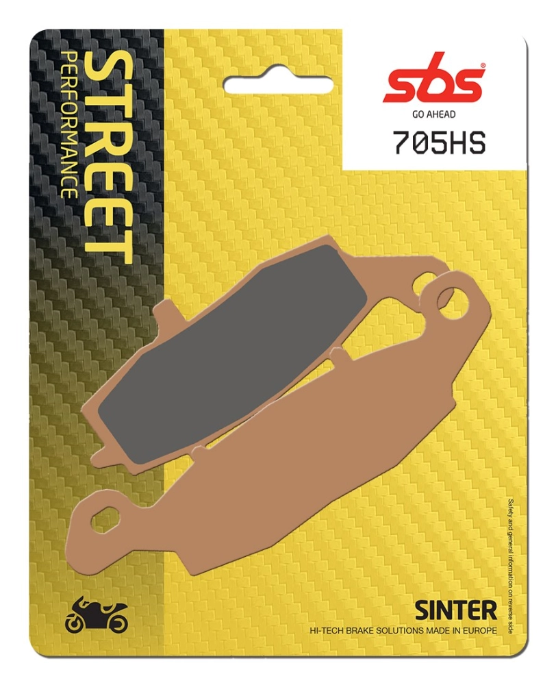 Pastiglie dei freni SBS 705 (HS) per moto con pastiglie anteriori sinterizzate originali. Parte della gamma Street Sinter - metallo sinterizzato anteriore.