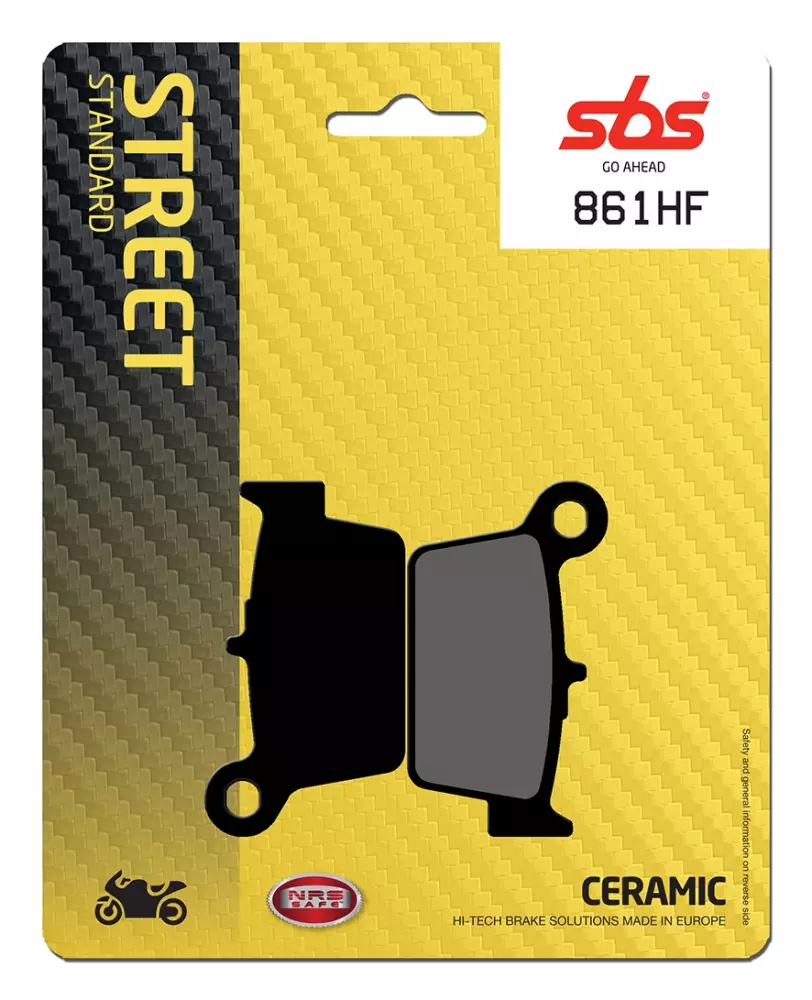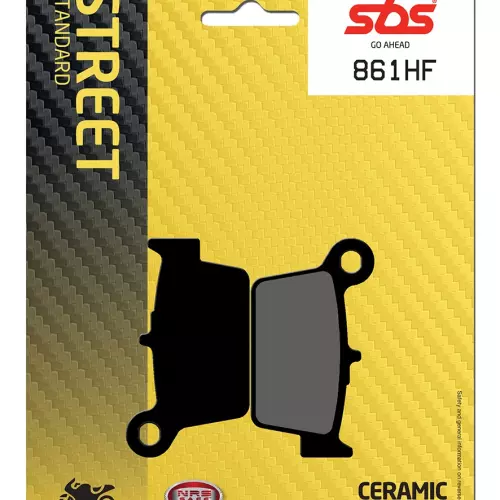 Pastiglie dei freni SBS 861HF della gamma Street Organique, ideali per sostituire le pastiglie originali e garantire una frenata stabile, un elevato livello di comfort, una lunga durata e una protezione del disco in condizioni di bagnato e asciutto per moto e scooter.