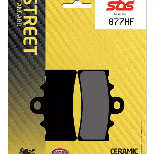 Pastiglie dei freni SBS 877HF della gamma Street Organique, ideali per sostituire le pastiglie originali e garantire una frenata stabile, un elevato livello di comfort, una lunga durata e una protezione del disco in condizioni di bagnato e asciutto per moto e scooter.