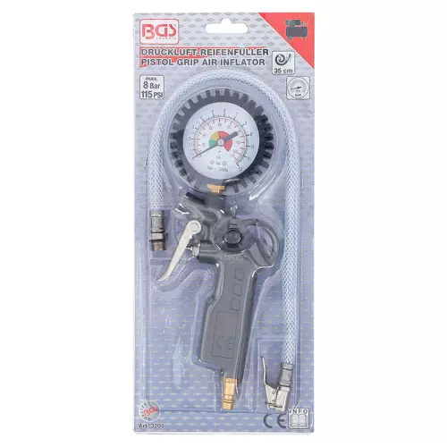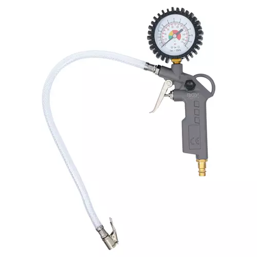 La pistola di gonfiaggio BGS da 0 a 8 bar consente di gonfiare correttamente i pneumatici e di ottenere una migliore maneggevolezza, essenziale per una guida sicura, soprattutto in curva.