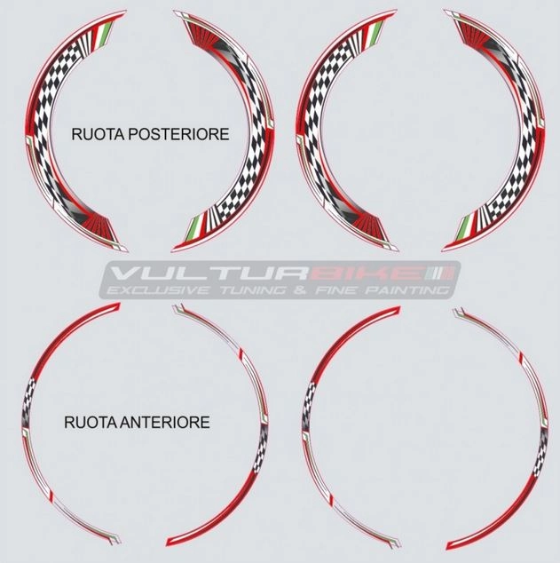Personalizzate la vostra moto con gli Kit adesivi per ruote Ducati Multistrada V4 Pikes Peak. Gli adesivi decorativi di Vulturbike sono realizzati in vinile colorato stabilizzato ai raggi UV.