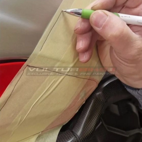 Consiglio di montaggio per i kit di grandi dimensioni: spesso è consigliabile smontare la carenatura per applicare la pellicola, avvolgendola intorno ai bordi del pezzo, anche all'interno, per una copertura più completa e uniforme.