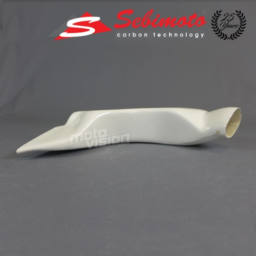 Presa d'aria sinistra Poly Sebimoto Honda CBR 600 RR 2005-2006 in fibra di vetro intrecciata con rinforzi in kevlar. Il prodotto si monta facilmente sulla moto grazie alla marcatura dei punti di foratura e alla buona finitura della carenatura.