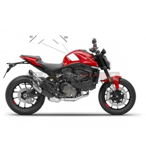 Personalizzate la vostra moto con gli Fasce adesive personalizzabili per serbatoio- Ducati Monster 937. Gli adesivi decorativi di Vulturbike sono realizzati in vinile colorato stabilizzato ai raggi UV.