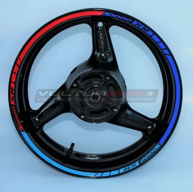 Personalizzate la vostra moto con gli Adesivi tre colori per ruote - BMW S1000XR. Gli adesivi decorativi di Vulturbike sono realizzati in vinile colorato stabilizzato ai raggi UV.