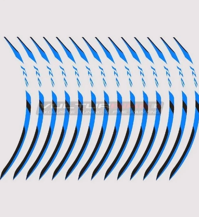 Personalizzate la vostra moto con gli Adesivi nero blu per ruote moto - Yamaha R6. Gli adesivi decorativi di Vulturbike sono realizzati in vinile colorato stabilizzato ai raggi UV.