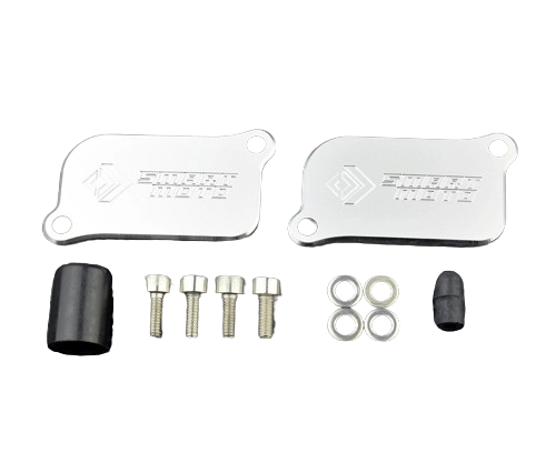 Il kit di soppressione delle emissioni SmartMoto è composto da parti lavorate a CNC (le piastre di chiusura), combinate con i kit completi SmartMoto che forniscono tutti i componenti necessari per eliminare il sistema di aria secondaria.