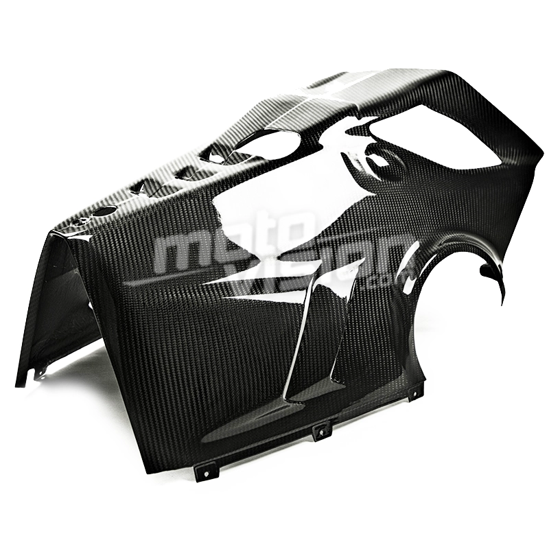 Zapata de motor carbonio Ducati Panigale V4 S 2022- da montare direttamente sui punti di fissaggio originali della moto per sostituire la carenatura originale. Le parti in carbonio vengono fornite senza viti e bulloni.