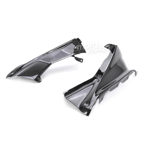 Protectores horquilla en carbono Aprilia RSV 4 da montare direttamente sui punti di fissaggio originali della moto per sostituire la carenatura originale. Le parti in carbonio vengono fornite senza viti e bulloni.