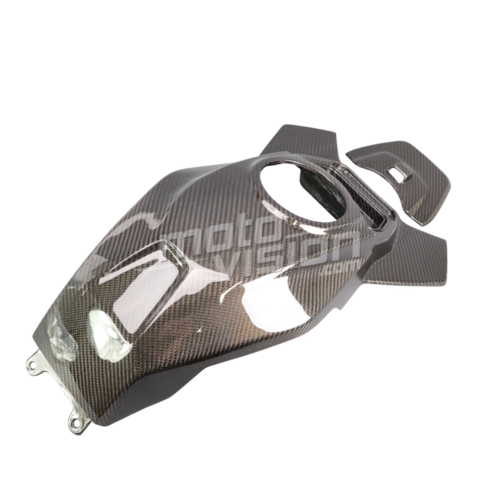 Protezione serbatoio in carbonio per BMW S1000XR 2020- 2023 consegnato senza viti o altri fissaggi. I fori sono già praticati sulle carenature per moto in carbonio. I pezzi sono disponibili con vernice lucida o opaca.