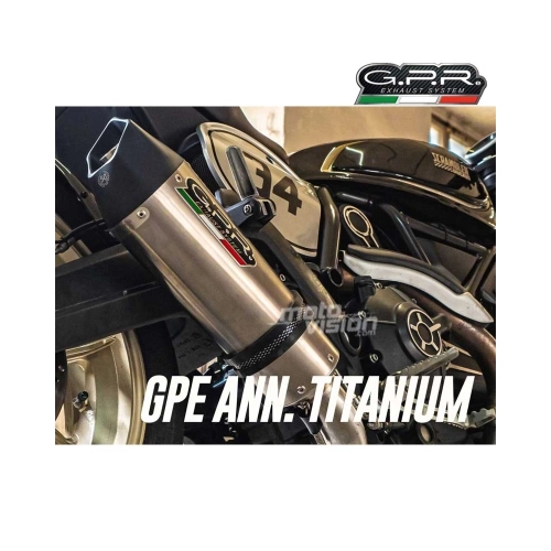 GP Anniversary Titanium di GPR è stato creato per celebrare il 50° Anniversario GPR nel 2018. Ha un corpo in titanio nero, tappi in avional realizzati tramite lavorazione CNC e un'uscita pentagonale. La sua forma a cono rotondo misura 90 MM x 130 MM. Questo kit comprende il raccordo (tubo di collegamento) e il suo catalizzatore specifico con le staffe e gli accessori appropriati. Ciò consente l'installazione senza alcuna modifica strutturale. Si tratta di un prodotto GPR originale, sviluppato dopo l'esperienza GPR nel Campionato del Mondo. Offre un design innovativo, prestazioni migliorate, risparmio di peso e un suono corposo. Peso: 1,68 Kg