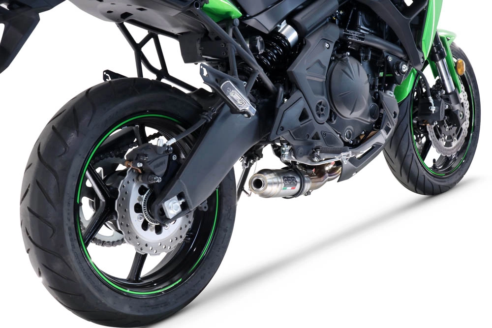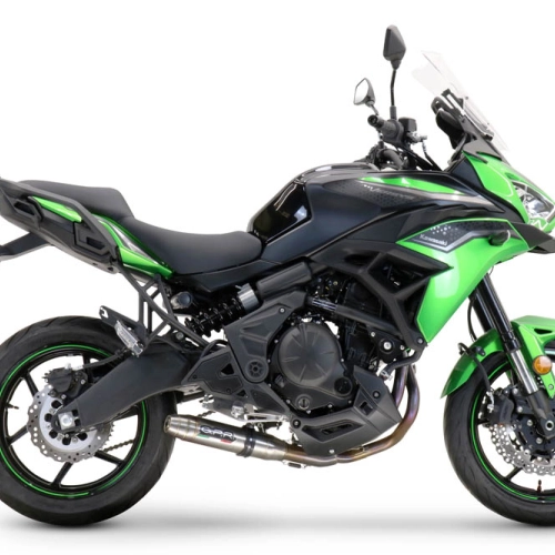 Specializzato in titanio e acciaio, il marchio italiano GPR Exhaust System può equipaggiare la tua Kawasaki Versys 650 2021 - 2022 con il Deeptone Inox, un sistema di scarico completo da corsa.