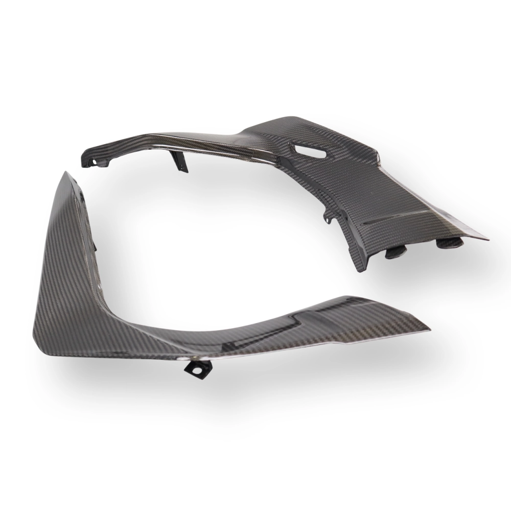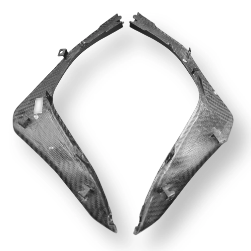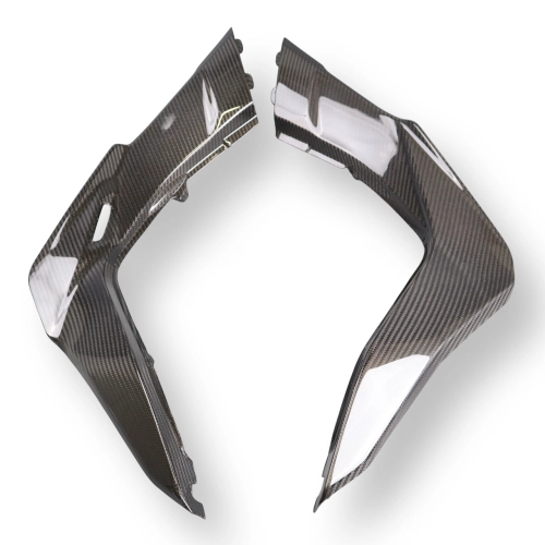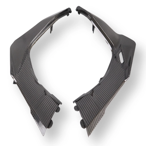 Tapas laterales bajo asiento en carbono DUCATI Multistrada V2/V2 S 2022- da montare direttamente sui punti di fissaggio originali della moto per sostituire la carenatura originale. Le parti in carbonio vengono fornite senza viti e bulloni.