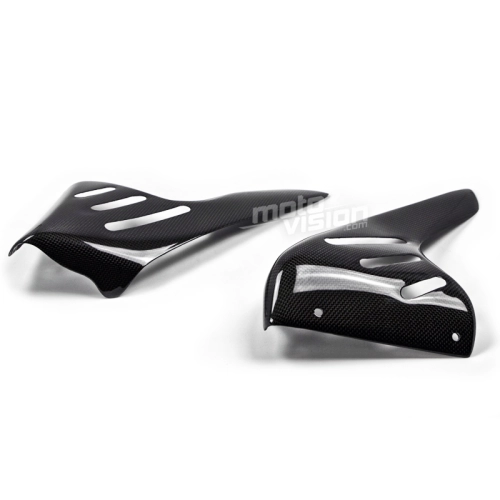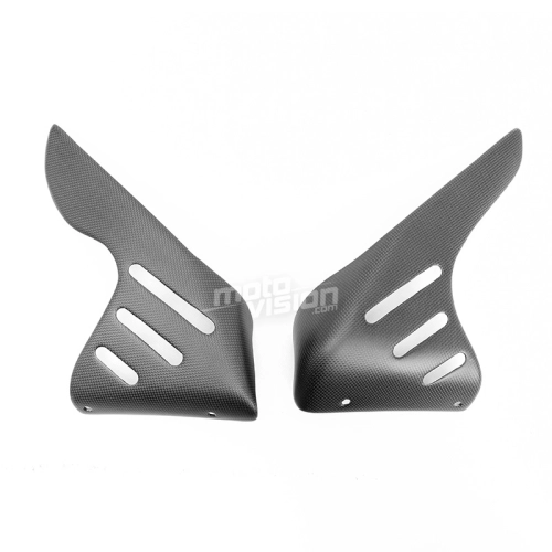 Protectores laterales para radiador en carbono Ducati Monster S4R da montare direttamente sui punti di fissaggio originali della moto per sostituire la carenatura originale. Le parti in carbonio vengono fornite senza viti e bulloni.