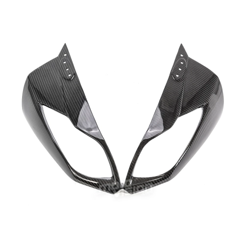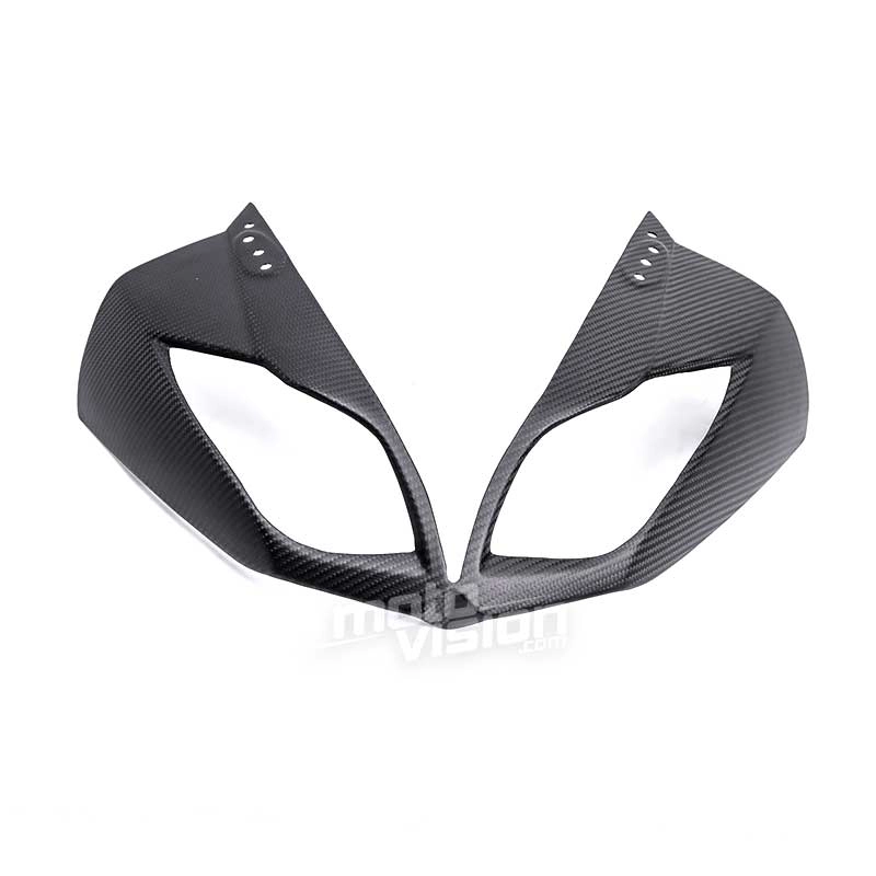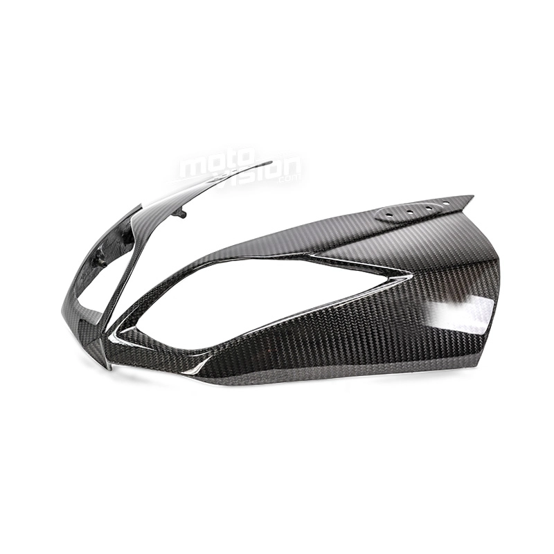 Carenado frontal en carbono Kawasaki ZX6 2009-2012 da montare direttamente sui punti di fissaggio originali della moto per sostituire la carenatura originale. Le parti in carbonio vengono fornite senza viti e bulloni.