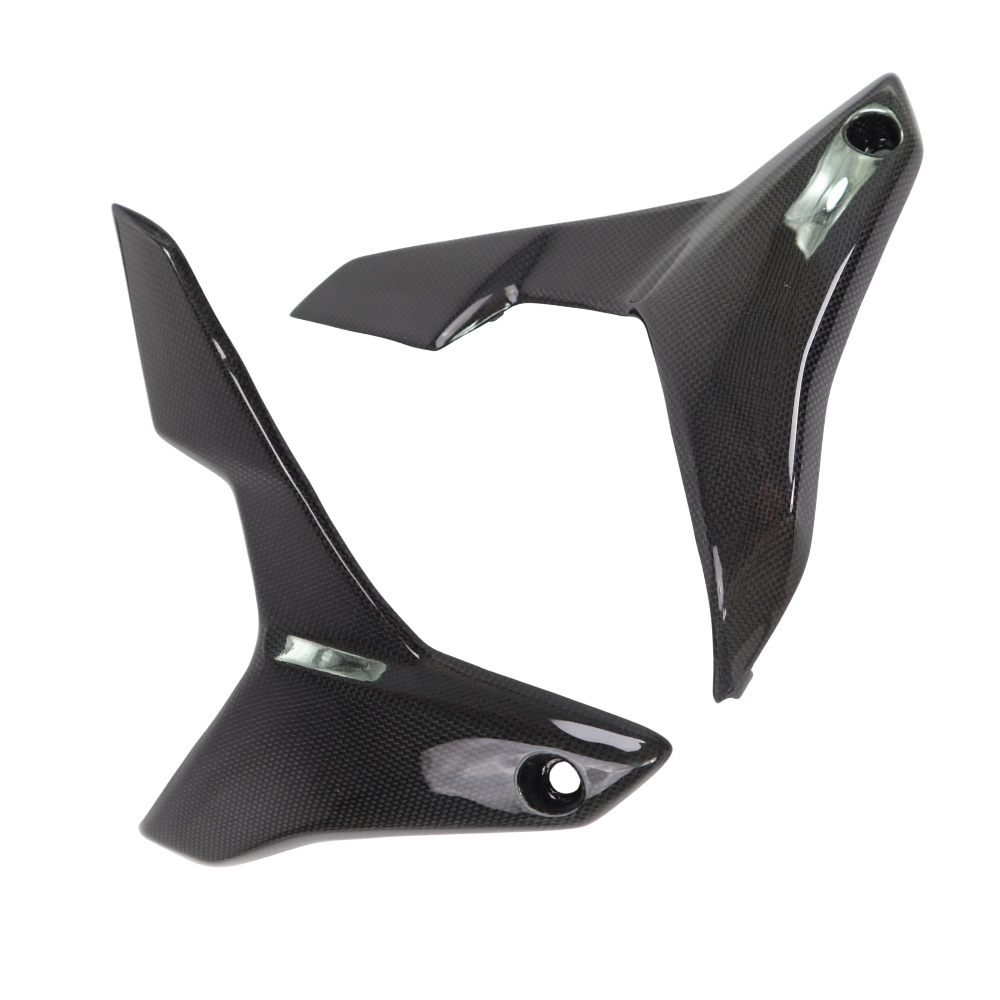 Carenados laterales en carbono Suzuki GSR 750 2011-2016 da montare direttamente sui punti di fissaggio originali della moto per sostituire la carenatura originale. Le parti in carbonio vengono fornite senza viti e bulloni.