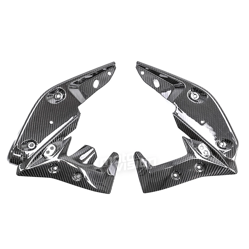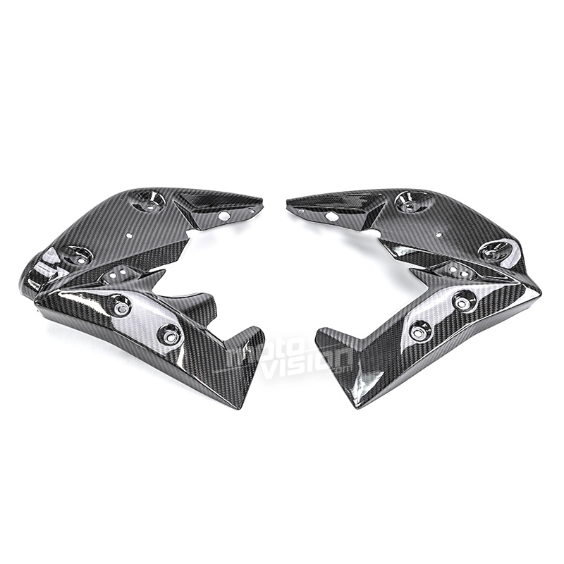 Protezione laterale Carbone Triumph Speed Triple 2011 consegnato senza viti o altri fissaggi. I fori sono già praticati sulle carenature per moto in carbonio. I pezzi sono disponibili con vernice lucida o opaca.