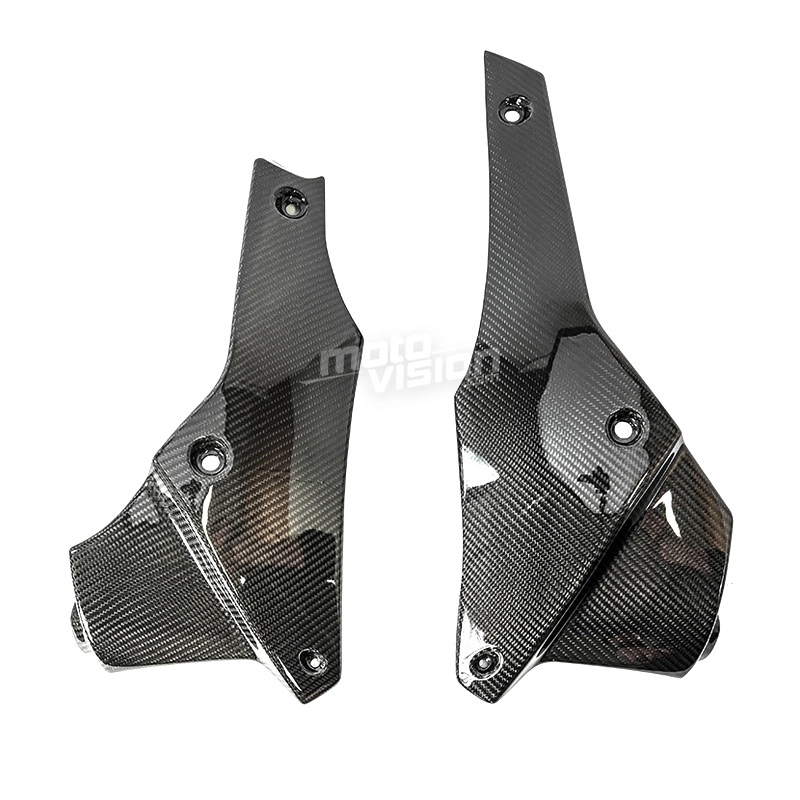 Protector motor en carbono Triumph Speed Triple 2011-2015 da montare direttamente sui punti di fissaggio originali della moto per sostituire la carenatura originale. Le parti in carbonio vengono fornite senza viti e bulloni.