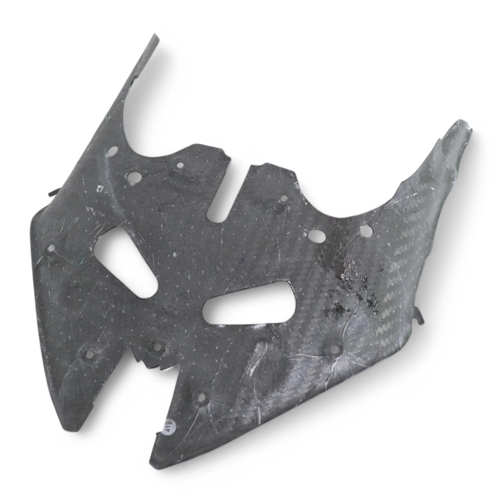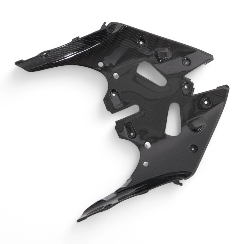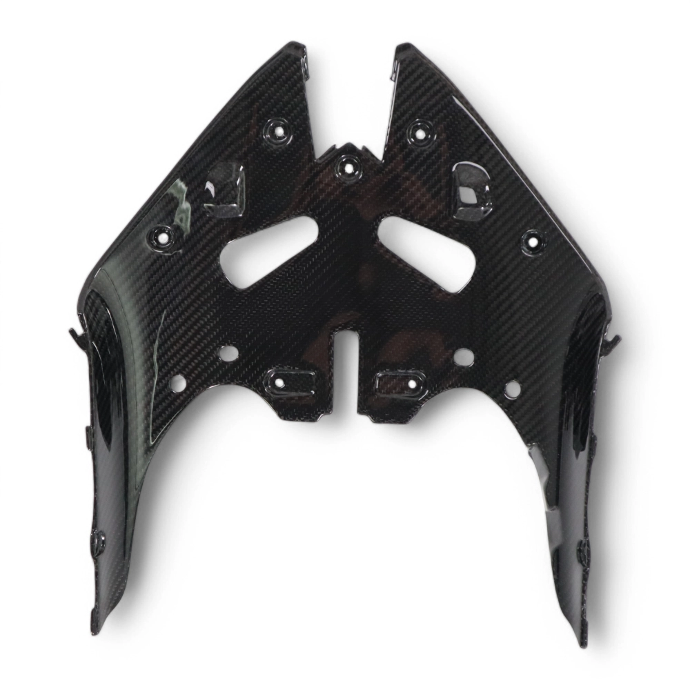 Tapa inferior del carenado frontal en carbono Kawasaki ZX6R 636 2024- da montare direttamente sui punti di fissaggio originali della moto per sostituire la carenatura originale. Le parti in carbonio vengono fornite senza viti e bulloni.