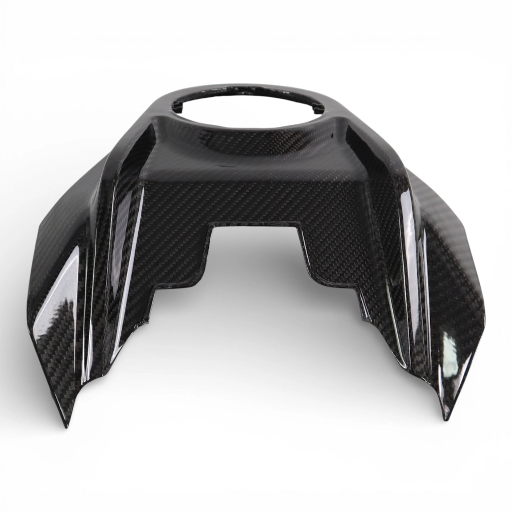 Protección déposito carbono KTM Duke 390 2024- da montare direttamente sui punti di fissaggio originali della moto per sostituire la carenatura originale. Le parti in carbonio vengono fornite senza viti e bulloni.
