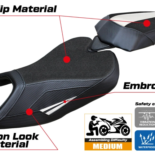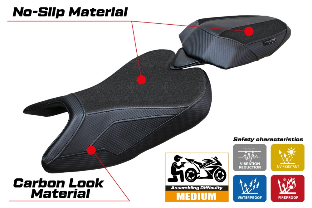 - Sistema comfort: Questa fodera è esternamente esattamente uguale a tutte le altre, ma è accoppiata all'interno con uno speciale strato di 2,5 cm di memory foam. Tappezzeria Italia è l'unico produttore ad utilizzare la tecnologia Memory Foam, che migliora il comfort di guida riducendo la fatica e le vibrazioni della moto.