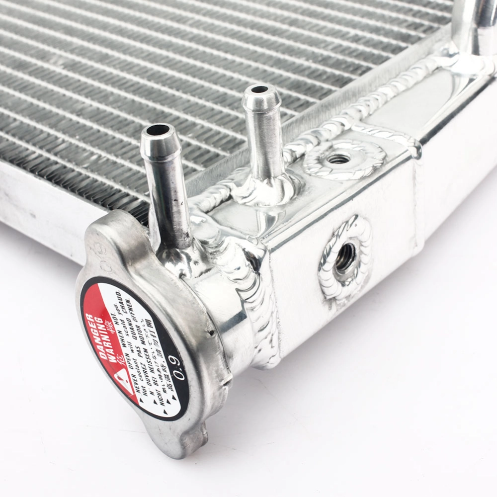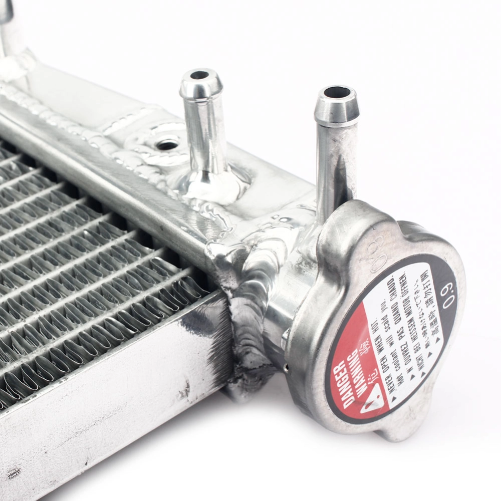 Questo radiatore è progettato per un raffreddamento rapido ed efficiente, anche in condizioni estreme. Il suo nucleo in alluminio è saldato sottovuoto, garantendo una perfetta sigillatura e una maggiore resistenza agli sbalzi termici, specialmente nell'uso in competizioni :