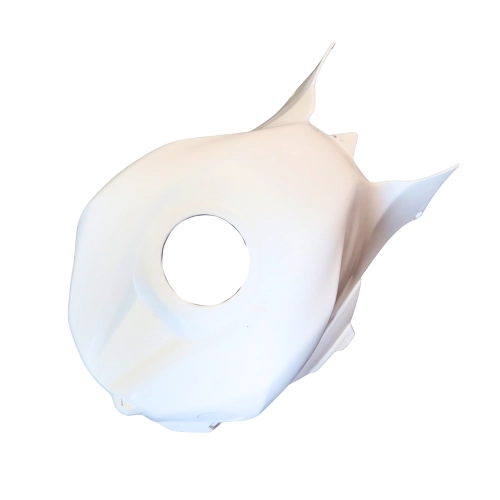 Sebimoto Carena anteriore polyester Honda CBR 600 RR 2024- in fibra di vetro intrecciata con rinforzi in kevlar. Il copriserbatoio per moto viene utilizzato per nascondere un serbatoio danneggiato o per evitare un'eventuale ghiaia, ma essendo piuttosto sottile non proteggerà il serbatoio in caso di forte caduta. Il prodotto si monta facilmente sulla moto grazie alla marcatura dei punti di foratura e alla buona finitura della carenatura.