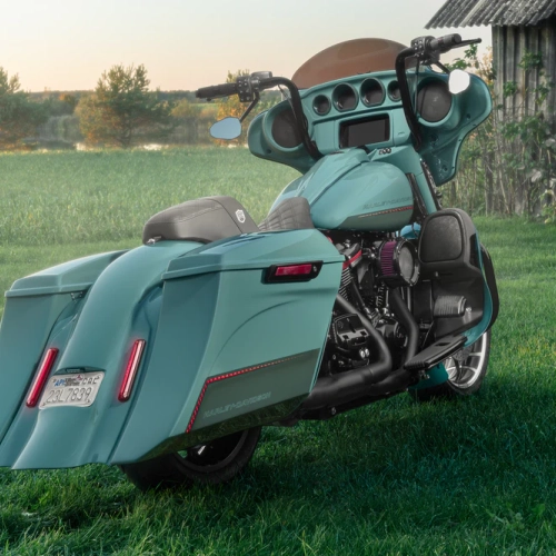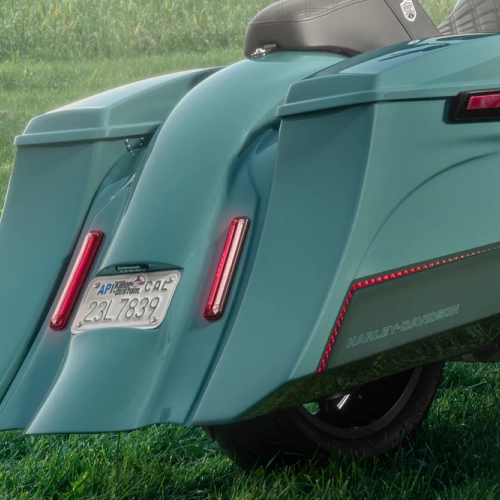 Cerchi una trasformazione unica per la tua moto? Questo kit di borse laterali estese di 7" verso il basso e parafango è progettato per adattarsi perfettamente al tuo bagger personalizzato, montandosi esattamente come le borse e il parafango originali. Le borse e il parafango sono preforati per un’installazione facile e includono la luce per la targa.