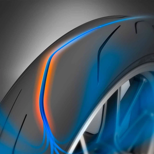 NUOVO DISEGNO DEI BATTISTRADA: Speed Vent Tread (SVT) migliora la gestione del calore durante la guida in curva, canalizzando il flusso d’aria e facilitando la dispersione del calore.