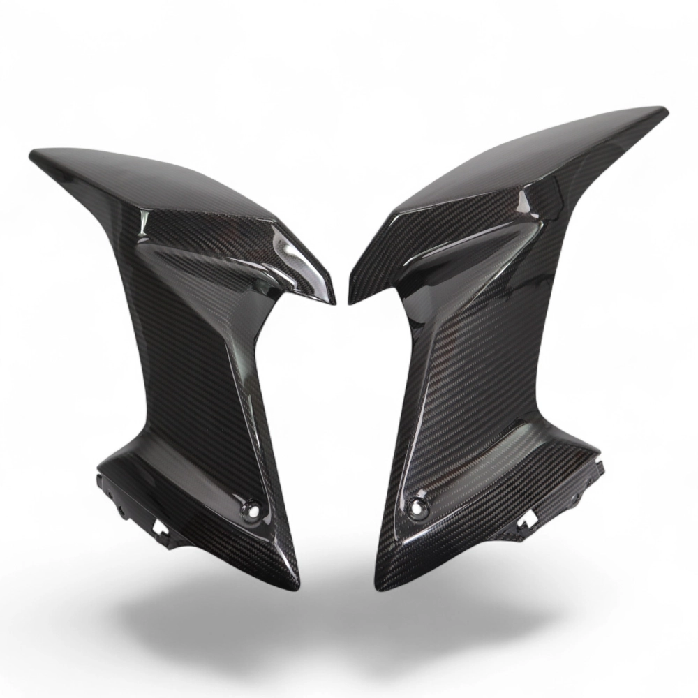 Fianchetti serbatoio in carbonio Suzuki GSX 8S 2023- consegnato senza viti o altri fissaggi. I fori sono già praticati sulle carenature per moto in carbonio. I pezzi sono disponibili con vernice lucida o opaca.