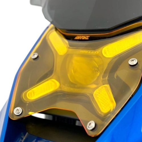 Protezione faro anteriore tinto per BMW R1300GS. Nessuna modifica richiesta; facile da installare e rimuovere. Protegge dagli urti e valorizza le linee della moto. Kit di montaggio incluso.