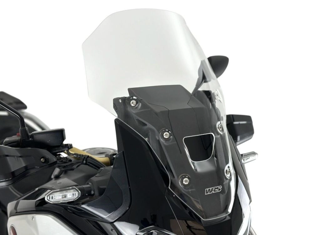 Parabrezza WRS Caponord Honda CRF1100L AFRICA TWIN ADV SPORTS Trasparente realizzato in plexiglass PMMA di alta qualità. Elimina le fastidiose turbolenze su spalle e casco. Maggiore protezione offerta dal parabrezza. Si integra perfettamente con la linea della moto per un look ancora più accattivante.