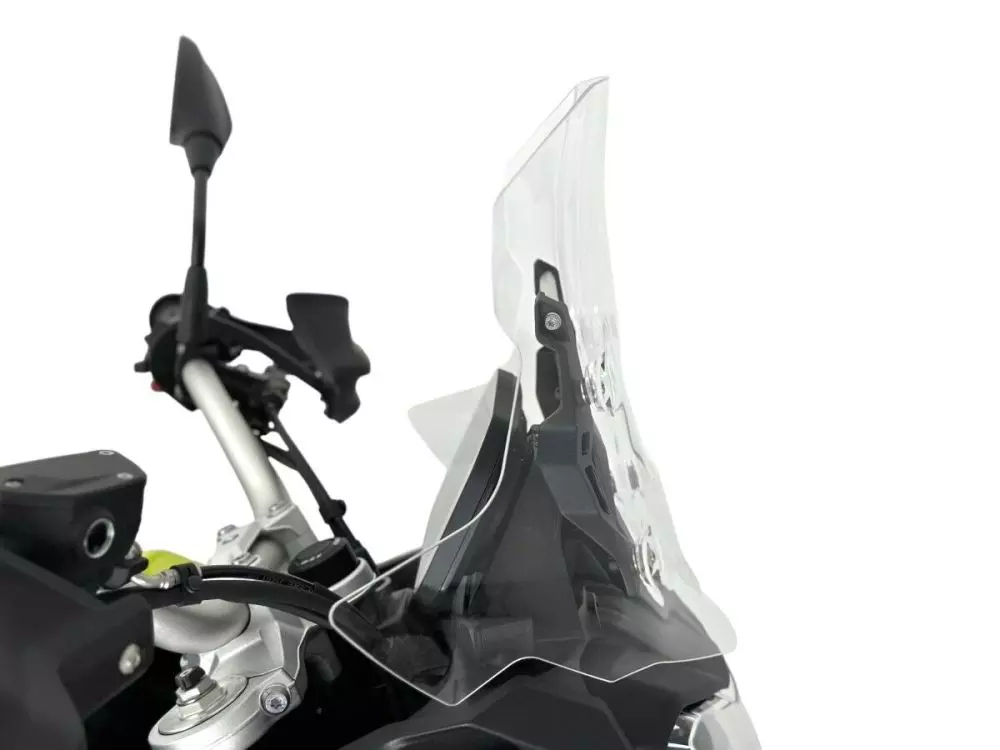 Parabrezza WRS Touring BMW F900GS Trasparente realizzato in plexiglass PMMA di alta qualità. Elimina le fastidiose turbolenze su spalle e casco. Maggiore protezione offerta dal parabrezza. Si integra perfettamente con la linea della moto per un look ancora più accattivante.