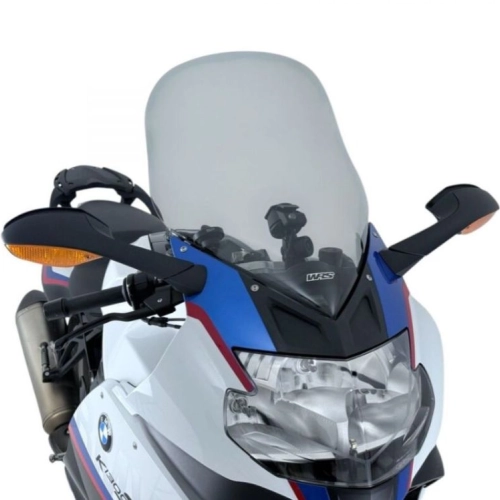 Parabrezza WRS Caponord BMW K1200S/K13 tinto. Parabrezza originale H 32,5 cm L 48 cm. Il Parabrezza BMW WRS Touring è 16,5 cm più alto e 1 cm più stretto dell&rsquooriginale. Realizzato secondo i più severi standard di sicurezza e nel rispetto del know-how, garantendo la massima resistenza e trasparenza, in plexiglass PMMA di alta qualità, spessore 3 mm. Le linee di questo parabrezza riducono le turbolenze create dall&rsquoaria. Il design, studiato nei minimi dettagli, si integra perfettamente con la linea della moto e le conferisce un aspetto ancora più accattivante. Versione Touring, ideale per chi desidera una maggiore protezione dall&rsquoaria, soprattutto all&rsquoaltezza delle spalle.