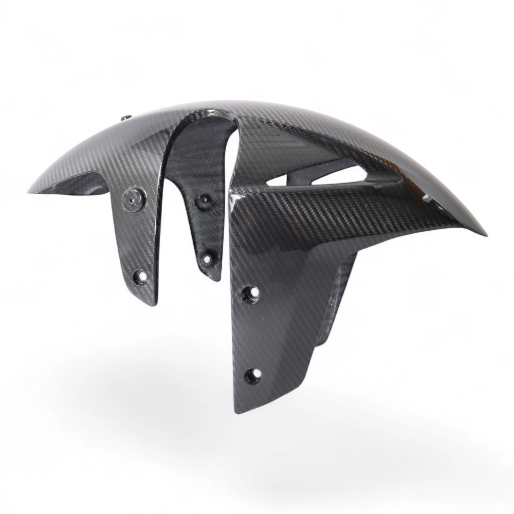 Parafango anteriore Carbon CFMOTO 675SR da montare direttamente sui punti di fissaggio originali della moto per sostituire la carenatura originale. Le parti in carbonio vengono fornite senza viti e bulloni.