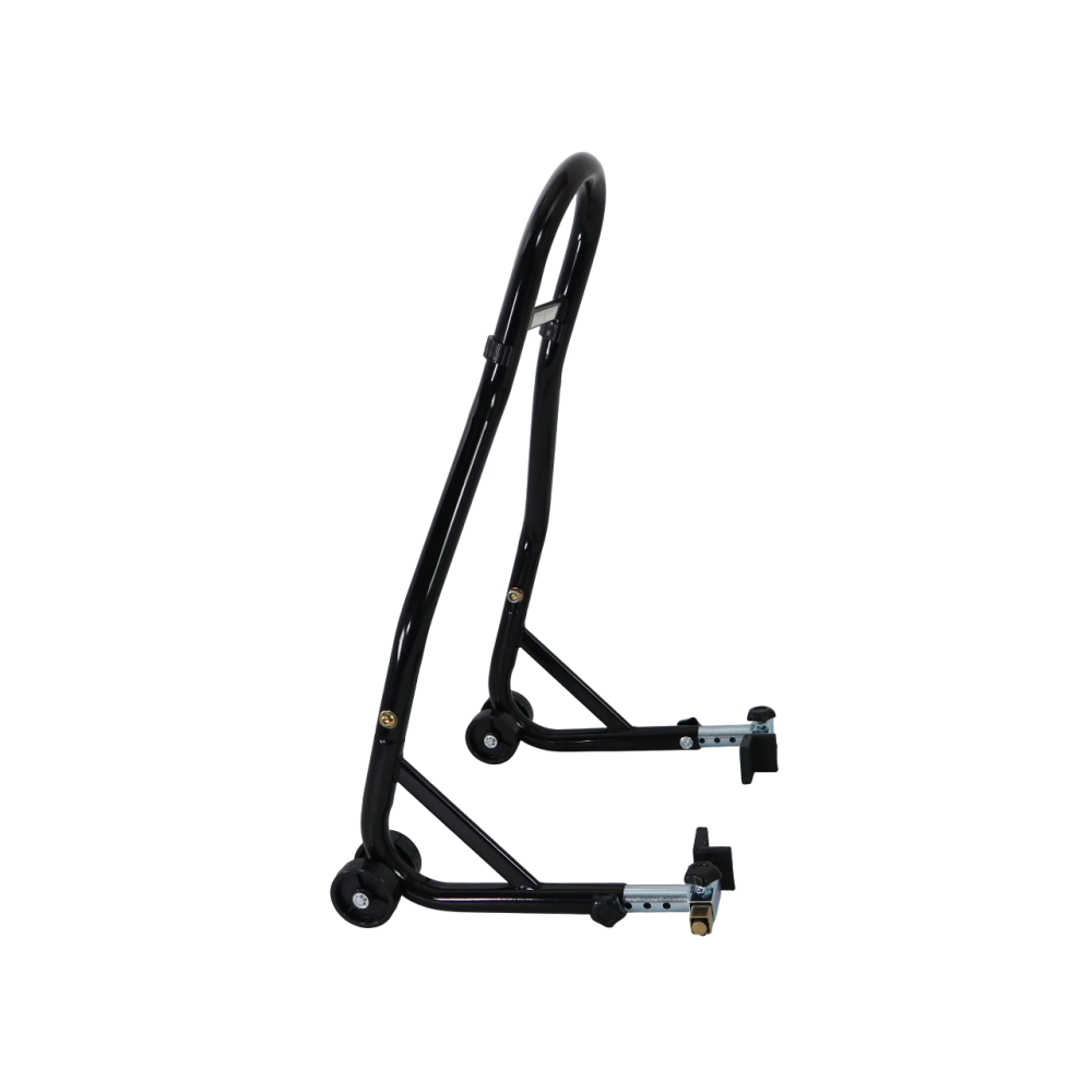 Il cavalletto posteriore con pattini, regolabile in altezza, è uno strumento essenziale per ogni motociclista che desidera manutenere la propria moto con precisione e sicurezza. Progettato per sollevare la moto dalla parte posteriore, questo cavalletto offre un supporto stabile e affidabile durante tutte le operazioni di manutenzione - cambio olio, pulizia, sostituzione della ruota o controllo dei freni.