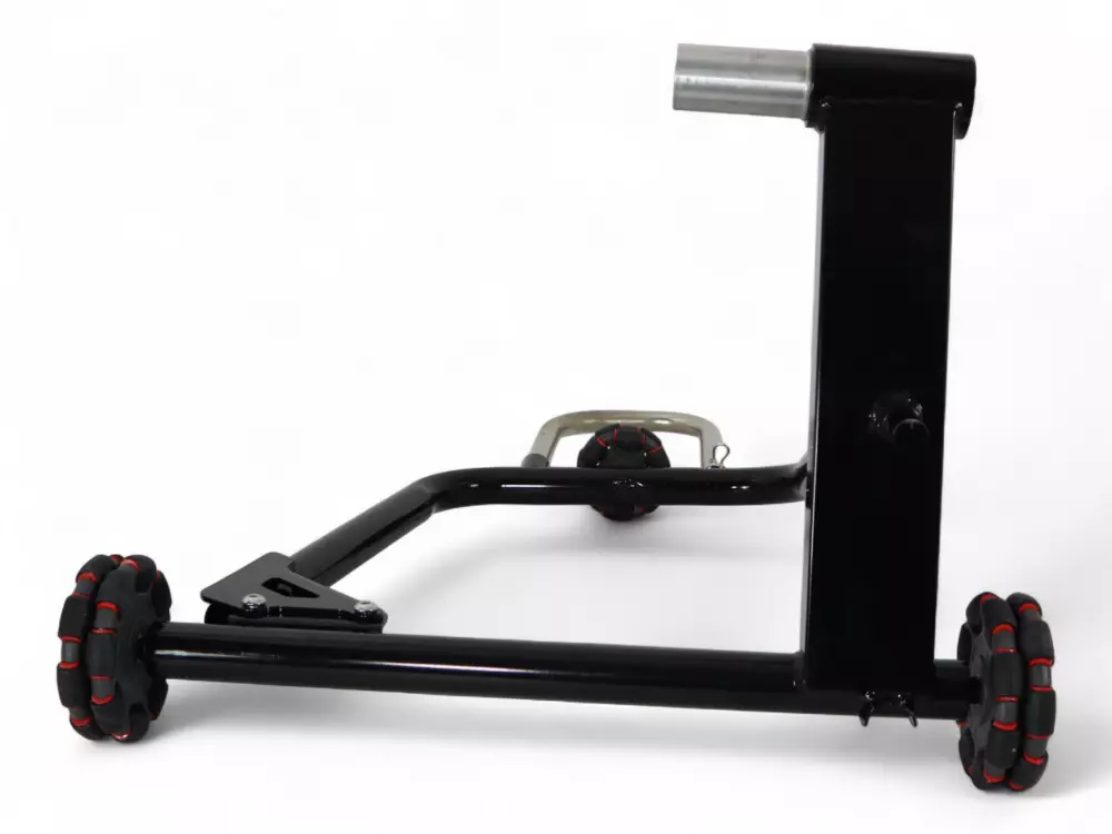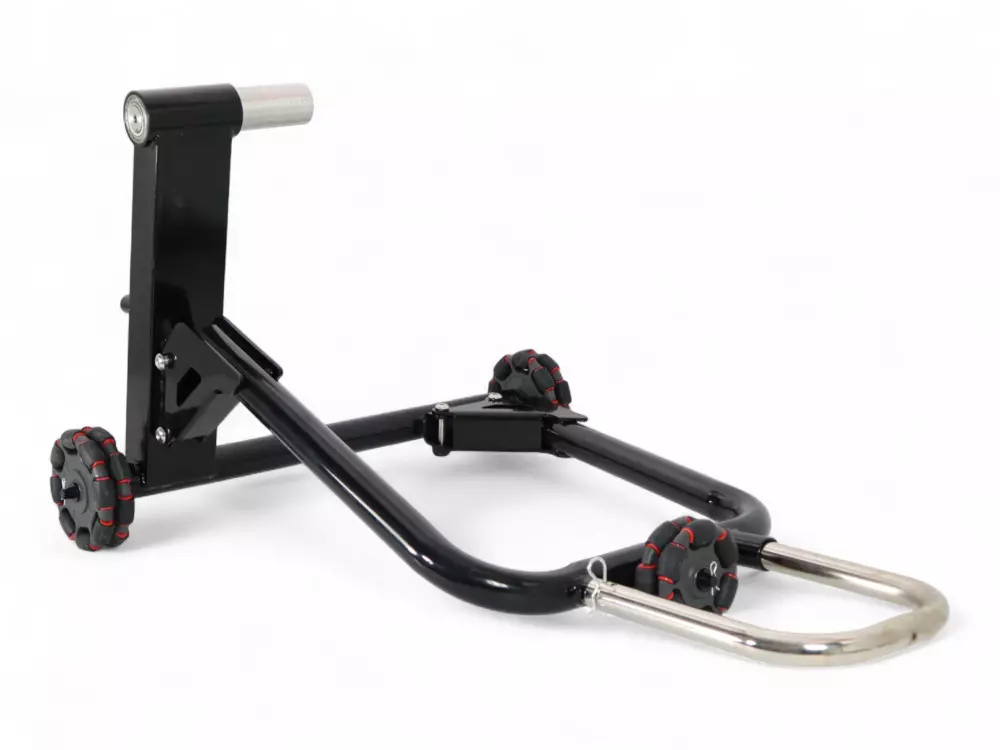 Il supporto è adatto alle moto con forcellone dotato di asse cavo. Garantisce una maggiore stabilità del veicolo, permettendo allo stesso tempo di spostarlo facilmente nel vostro garage!