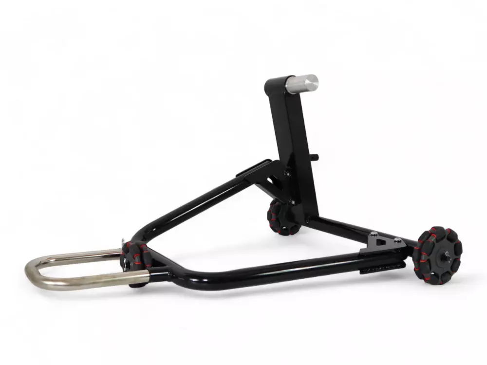 IMPORTANTE: Le dimensioni degli assi variano a seconda del modello di moto. In caso di dubbi sulla compatibilità del prodotto con il vostro veicolo, vi invitiamo a indicare il modello esatto della vostra moto nella homepage del nostro sito per filtrare i risultati. È inoltre possibile verificare direttamente sulla moto la dimensione dell’asse necessaria.Mobile single-sided workshop stand with a 40.5 mm spindle, specific to all DUCATI motorcycles: 1098, 1198, 1199.