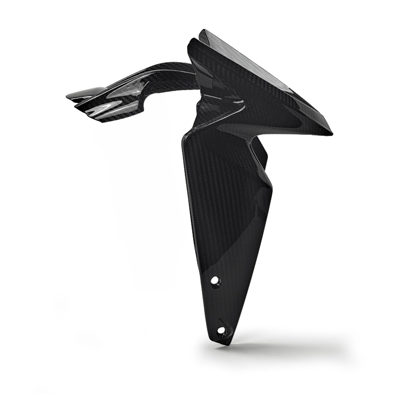 Guardabarros en carbono MV Agusta Rivale 2013 da montare direttamente sui punti di fissaggio originali della moto per sostituire la carenatura originale. Le parti in carbonio vengono fornite senza viti e bulloni.