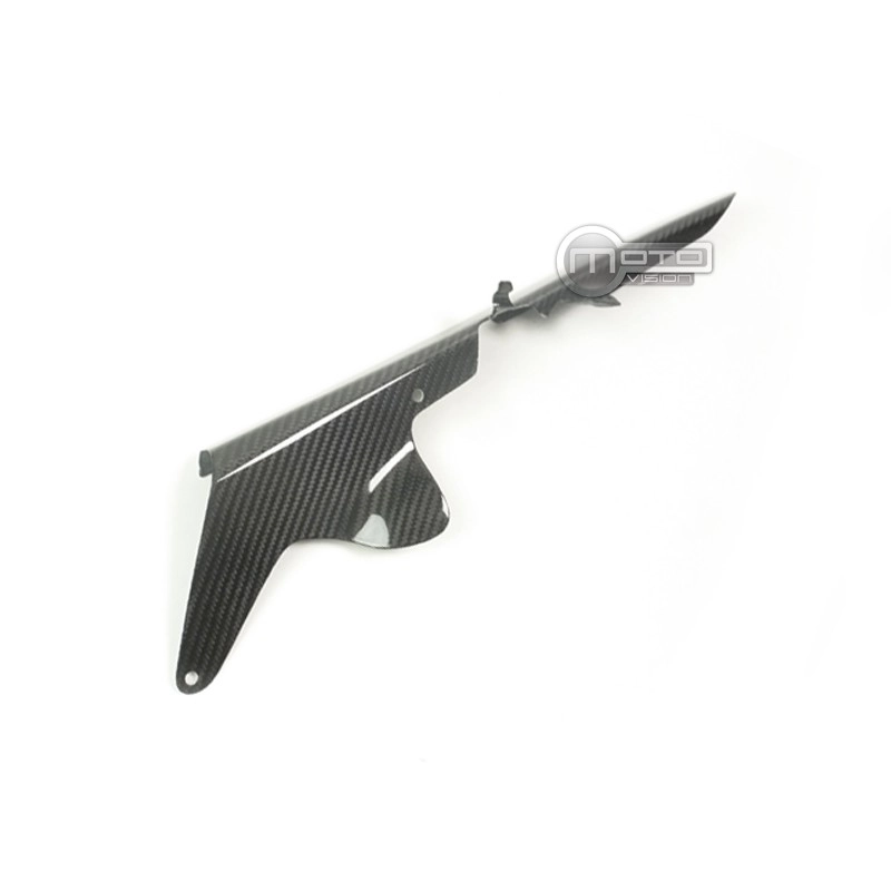 Protector de cadena en carbono Kawasaki ZX10 2011-2015 da montare direttamente sui punti di fissaggio originali della moto per sostituire la carenatura originale. Le parti in carbonio vengono fornite senza viti e bulloni.