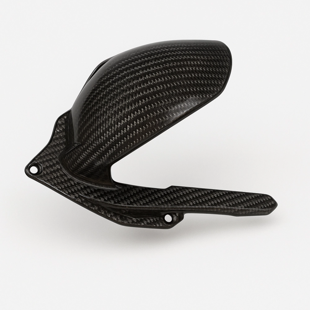 Rear Hugger carbonio Ducati Panigale V4/V4S 2025, consegnato senza viteria. Fori pre‑forati sui pezzi in carbonio.