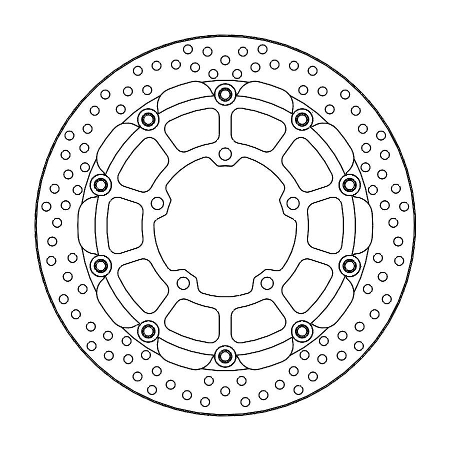 Il disco freno Moto Master Halo 320 mm flottante forato 5 fori 112390 offre una frenata potente e regolare, con un’eccellente dissipazione del calore.