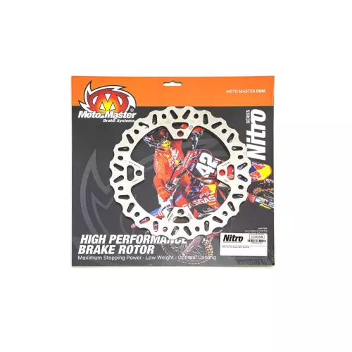 Il disco freno Moto Master Nitro 240 mm fisso (Solid-Mount) forato 4 fori 110358 offre una frenata potente e regolare, con un’eccellente dissipazione del calore.