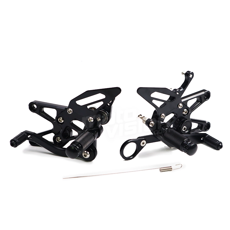 I Pedane poggiapiedi regolabili BMW S1000 R RR 2009-2014 hanno una leva regolabile individualmente con 8-10 regolazioni a seconda del modello e piastre con finitura anodizzata nera opaca. Hanno 2 posizioni per il pedale del cambio/freno.